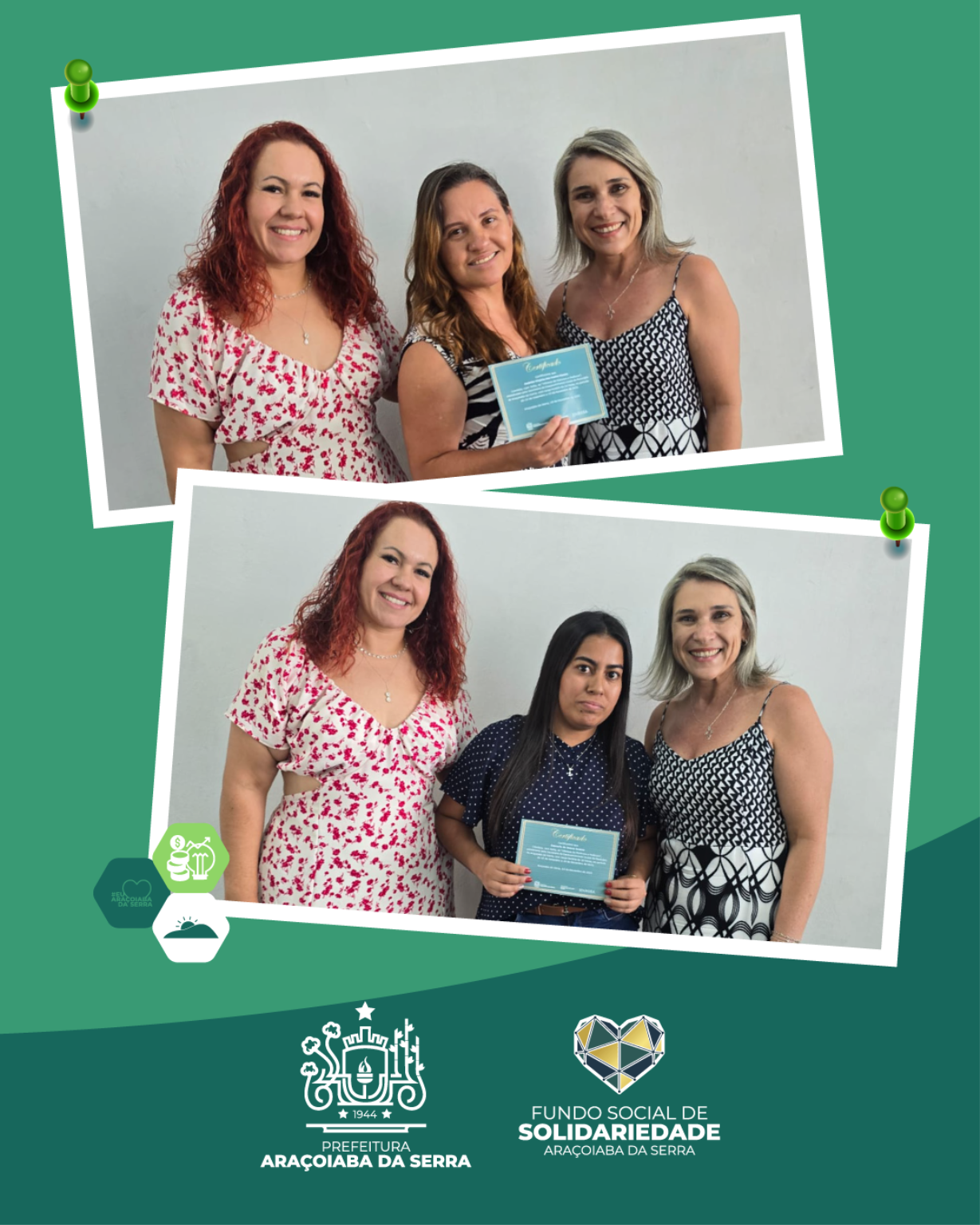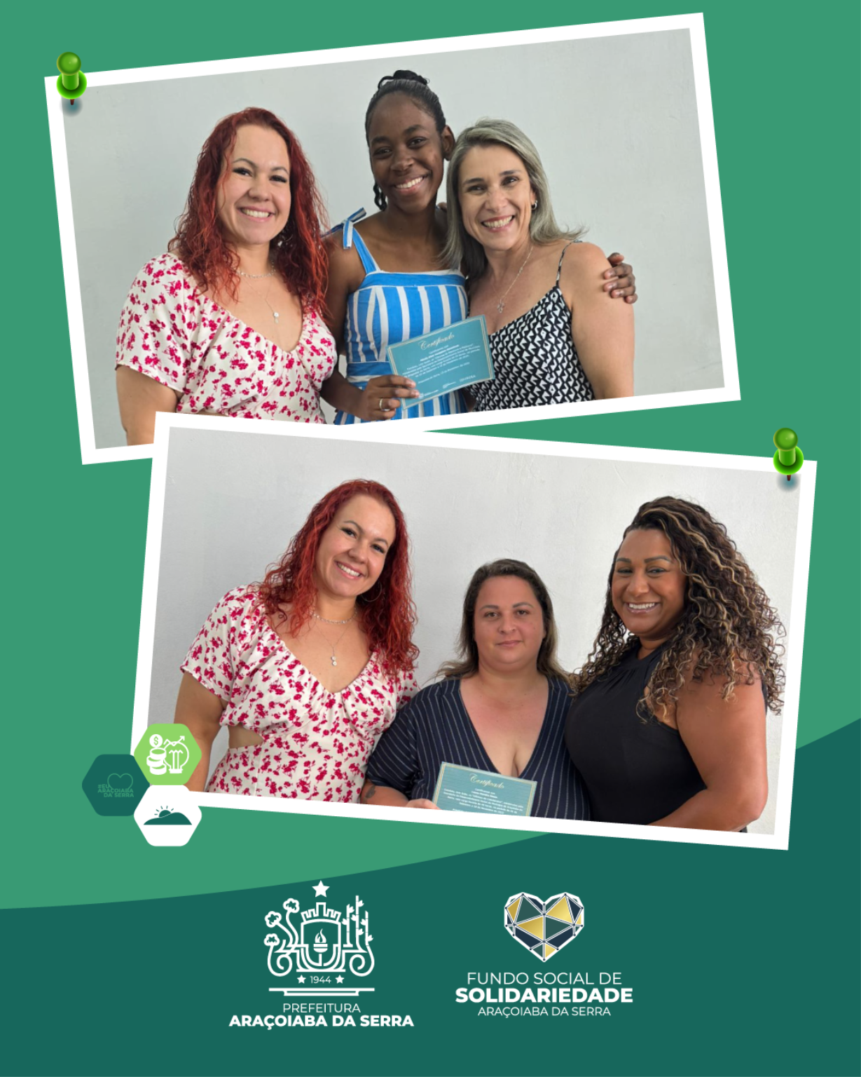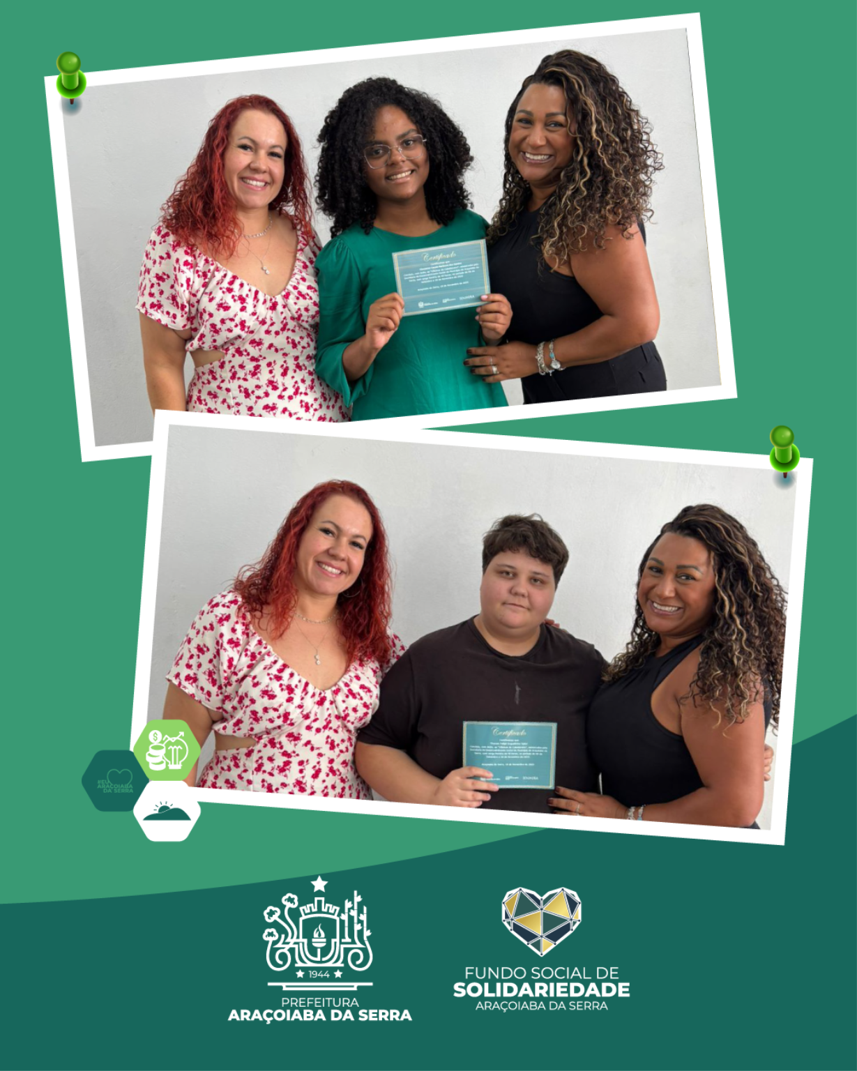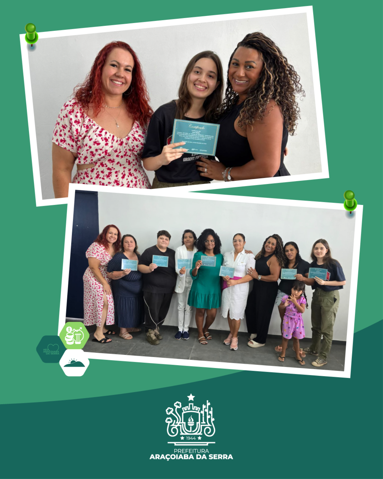 A Prefeitura de Araçoiaba da Serra, por meio da Secretaria de Desenvolvimento Social, realizou na última semana a entrega dos certificados dos cursos de Cabeleireiro, ocorrido no Espaço Mais Família do bairro Jundiacanga, e de Manicure, promovido no Serviço de Convivência em Araçoiabinha. As formações tiveram como objetivo desenvolver habilidades profissionais, incentivar o empreendedorismo, ampliar a autonomia financeira e fortalecer vínculos comunitários. A iniciativa reforça o compromisso do município com a qualificação, geração de renda e novas oportunidades para a população, promovendo crescimento pessoal e profissional aos participantes.