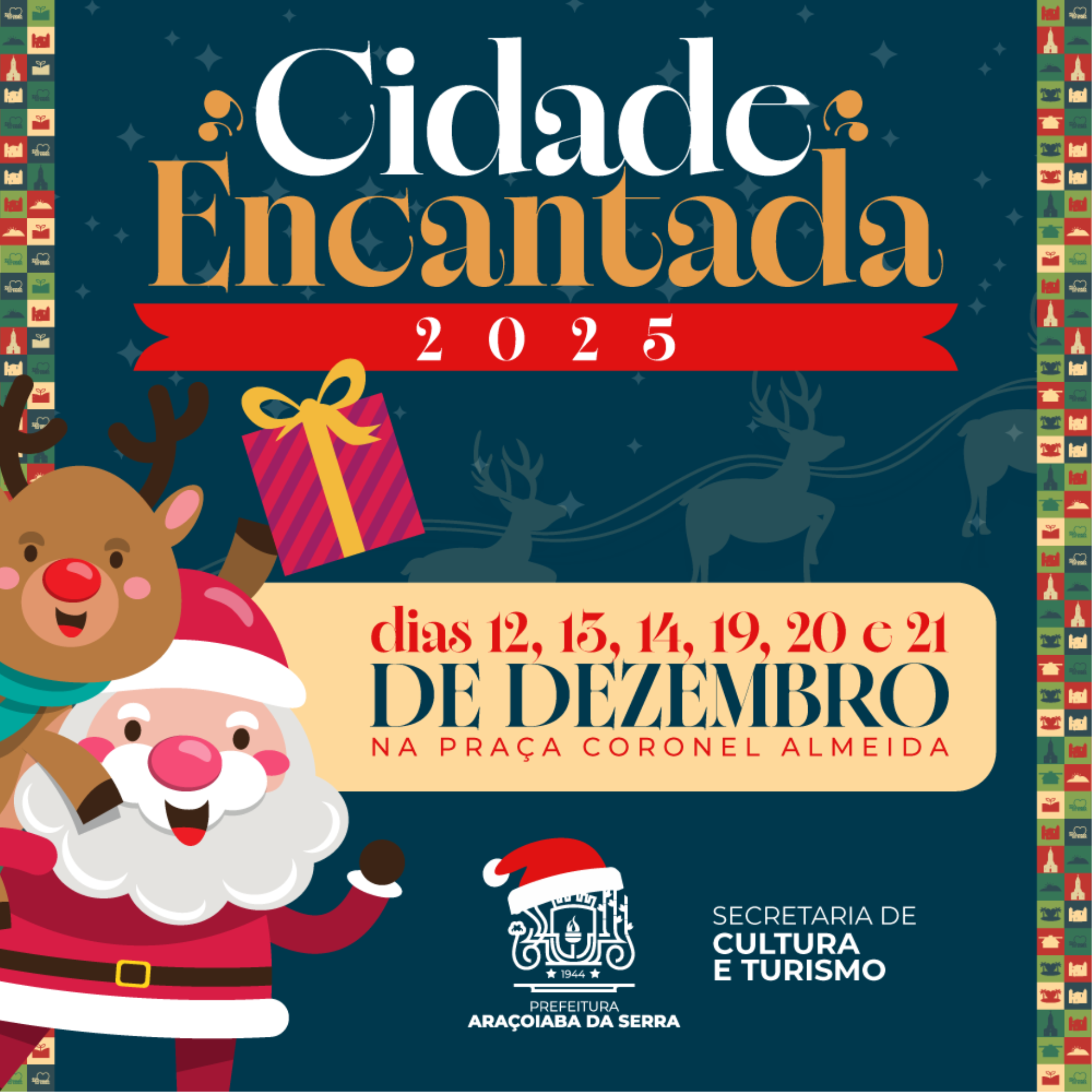 O Natal Cidade Encantada 2025 irá transformar a Praça Coronel Almeida em um espaço de celebração e magia, reunindo apresentações culturais, música, teatro, personagens e momentos especiais para toda a família. Além da programação artística, o público poderá aproveitar as delícias da praça de alimentação e as opções de lazer para as crianças, como o tradicional carrossel e outros brinquedos que deixam o clima ainda mais encantador. Uma experiência completa para viver a alegria e o espírito natalino em Araçoiaba da Serra. Confira a programação: 12 de dezembro, sexta-feiraA partir das 19h30Noite de AberturaA magia começa com o teatro infantil “Amizade”, seguido pelo Coral Natalino da Igreja do Calvário e o show de Priscila Andrade, trazendo emoção e clima festivo para a primeira noite. 13 de dezembro, sábadoA partir das 19hNoite MusicalA programação reúne a dupla Meninos de Araçoiaba e a banda Roupa Nova cover, em uma sequência de músicas para alegrar a noite. 14 de dezembro, domingoA partir das 18hDomingo EncantadoA noite começa com Hitbox, seguida pela banda católica Yeshua, e continua com o show de Wandê e Banda e o show de João Batista, trazendo ritmo, fé e muita animação ao clima natalino. 19 de dezembro, sexta-feiraA partir das 19hMagia na Praça A programação apresenta o espetáculo de teatro "Natal Encantado", seguido pela Banda Boa Nova, animando a noite com ritmos e estilos variados. 20 de dezembro, sábadoA partir das 19hGrandes Sucessos e EmoçãoA noite traz a Orquestra Filarmônica Jovem de Sorocaba e o show Queen Cover, que promete envolver o público com clássicos inesquecíveis. 21 de dezembro, domingoA partir das 17h30Noite FelizA tarde começa com a Turma da Disney, seguida da banda Son Band. Em seguida, a chegada do Papai Noel acompanhada pela Banda Marcial, encerrando com o show da cantora Paula Nunes.