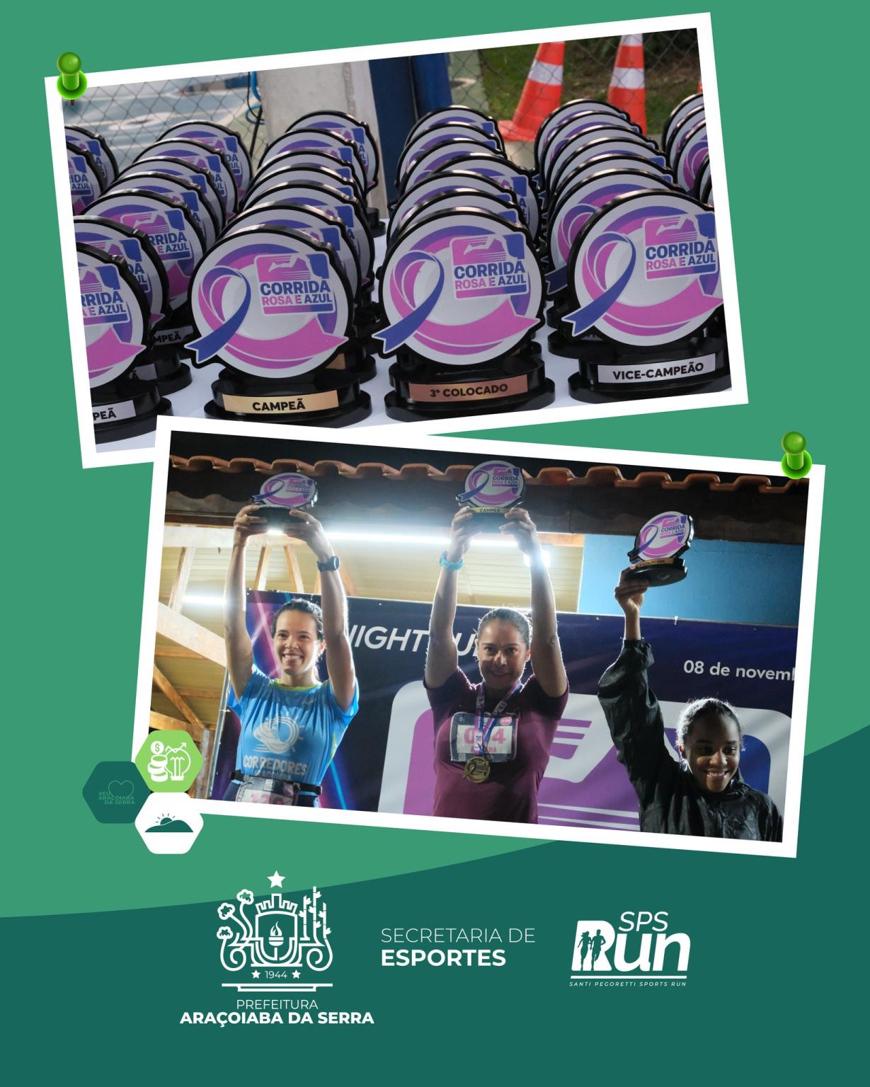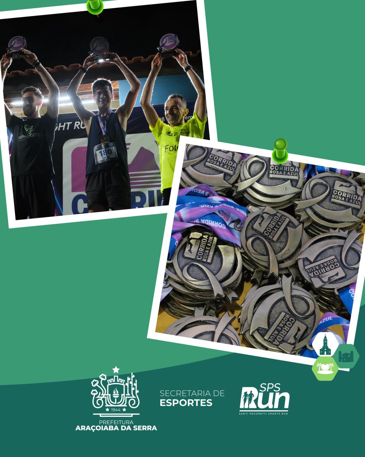 A Prefeitura de Araçoiaba da Serra, em parceria com a Secretaria de Esportes, realizou com sucesso a 1ª Corrida Noturna Rosa e Azul, um evento que reuniu mais de 400 participantes em uma noite marcada por saúde, prevenção e superação. Foram entregues 51 troféus aos atletas e equipes que se destacaram no percurso de 5 km, conforme o regulamento oficial. Na categoria Geral Masculino, os vencedores foram Carlos Vitor da Cunha Barros (1º lugar), Gustavo Cleto Camargo (2º lugar) e José Alberto da Silva (3º lugar). Já no Geral Feminino, Adriana conquistou o 1º lugar, seguida por Gabriela Cristina de Souza Costa (2º) e Isabelly Plens Strumielo (3º). Entre os moradores de Araçoiaba da Serra, os destaques foram Wellington Souza Amaral, Leonardo Lima e Cleiton Francisco, no masculino, e Gabriela Cristina de Souza Costa, Isabelly Plens Strumielo e Adeenne Felipe de Oliveira, no feminino. As maiores equipes participantes foram Corredores de Araçoiaba, Prefeitura de Araçoiaba da Serra e Associação Novo Tempo. O evento representou um importante incentivo à prática esportiva e ao bem-estar, reforçando o compromisso do município com a promoção da saúde, da prevenção e da qualidade de vida.
