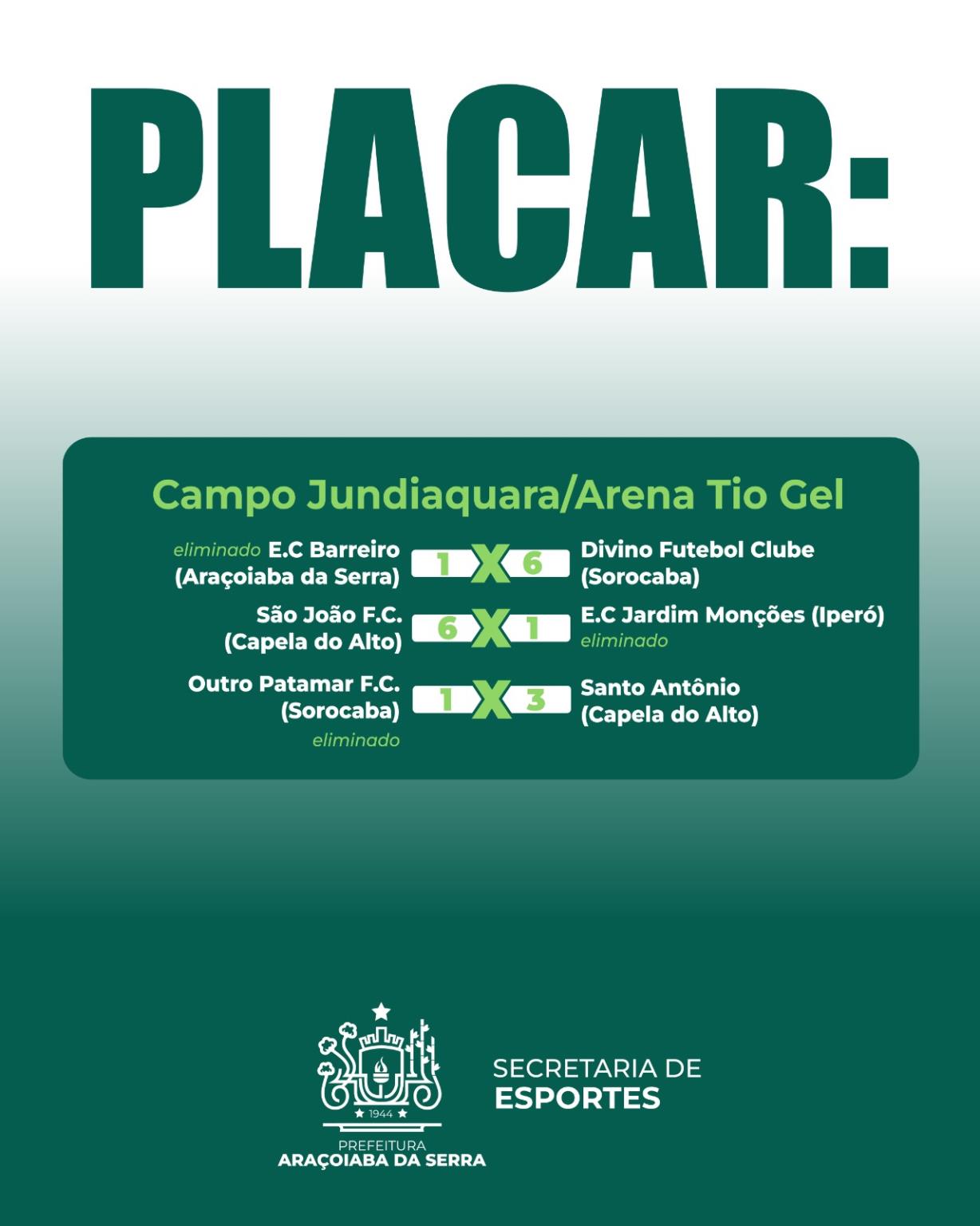 A Prefeitura de Araçoiaba da Serra, por meio da Secretaria de Esportes, Lazer e Juventude, informa que no domingo, dia 12 de abril, foi realizada a 9ª Rodada do Campeonato Intermunicipal de Futebol 2026, no Campo de Futebol Jundiaquara (Arena Tio Gel). A competição reúne 32 equipes da região e segue movimentando o esporte no município. Mais informações, tabela completa e atualizações podem ser acompanhadas em copafacil.com/intermunicipal2026](h