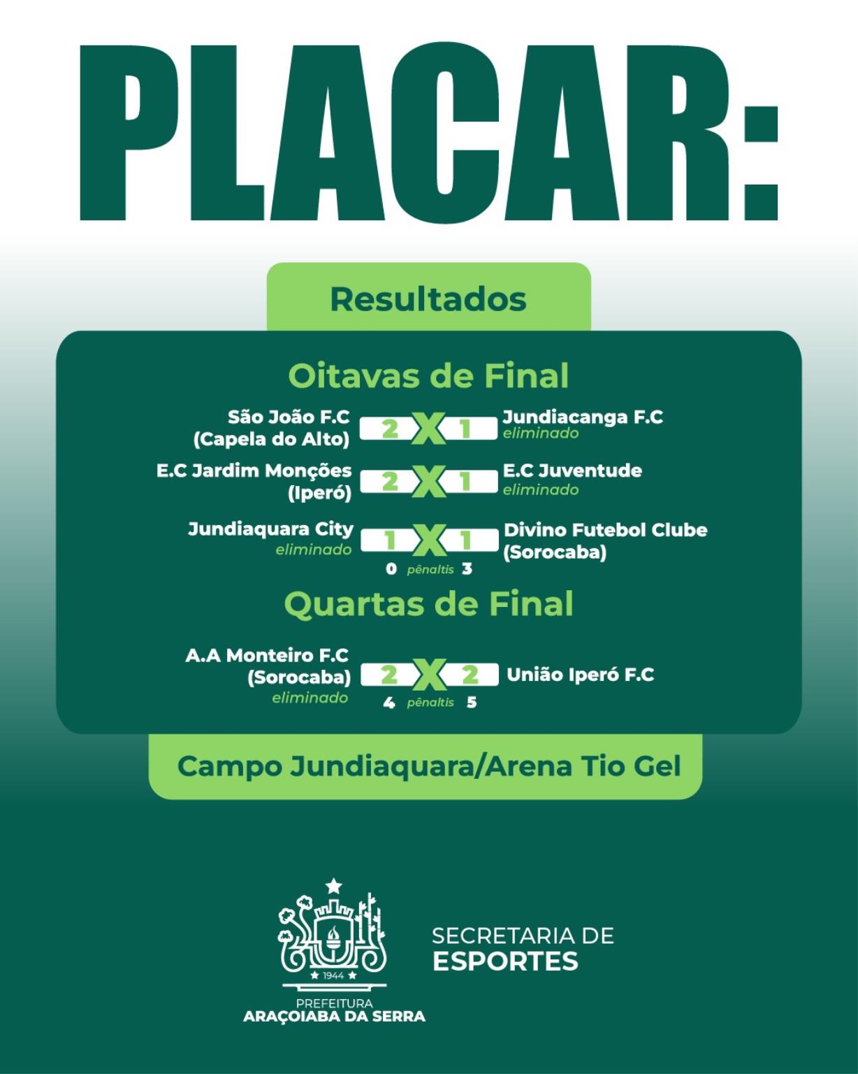 A Prefeitura de Araçoiaba da Serra, por meio da Secretaria de Esportes, Lazer e Juventude, informa que no domingo, dia 29 de março, foi realizada a 8ª Rodada do Campeonato Intermunicipal de Futebol 2026, no Campo de Futebol Jundiaquara (Arena Tio Gel). A competição reúne 32 equipes da região e segue movimentando o esporte no município. Mais informações, tabela completa e atualizações podem ser acompanhadas em copafacil.com/intermunicipal2026