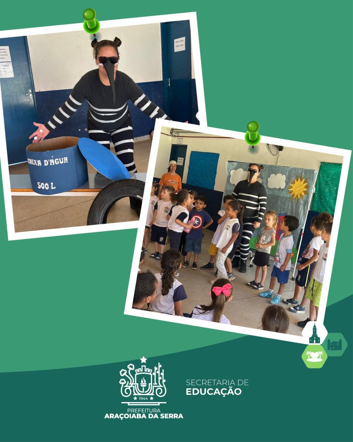 A Prefeitura de Araçoiaba da Serra, por meio da Secretaria de Saúde, realizou no Bosque, no dia 28 de novembro, período da tarde, uma atividade educativa com as crianças da EMEIEF Prof.ª Maria Silvia Florenzano, de 4 a 7 anos, envolvendo aproximadamente 50 alunos. A ação abordou a prevenção à dengue por meio de um teatro lúdico, que demonstrou o ciclo do mosquito, seus principais criadouros e as formas corretas de eliminá-los. A iniciativa buscou ampliar a conscientização das crianças e incentivá-las a levar o conhecimento para suas famílias, reforçando que atitudes simples, como evitar água parada, são essenciais para proteger toda a comunidade.