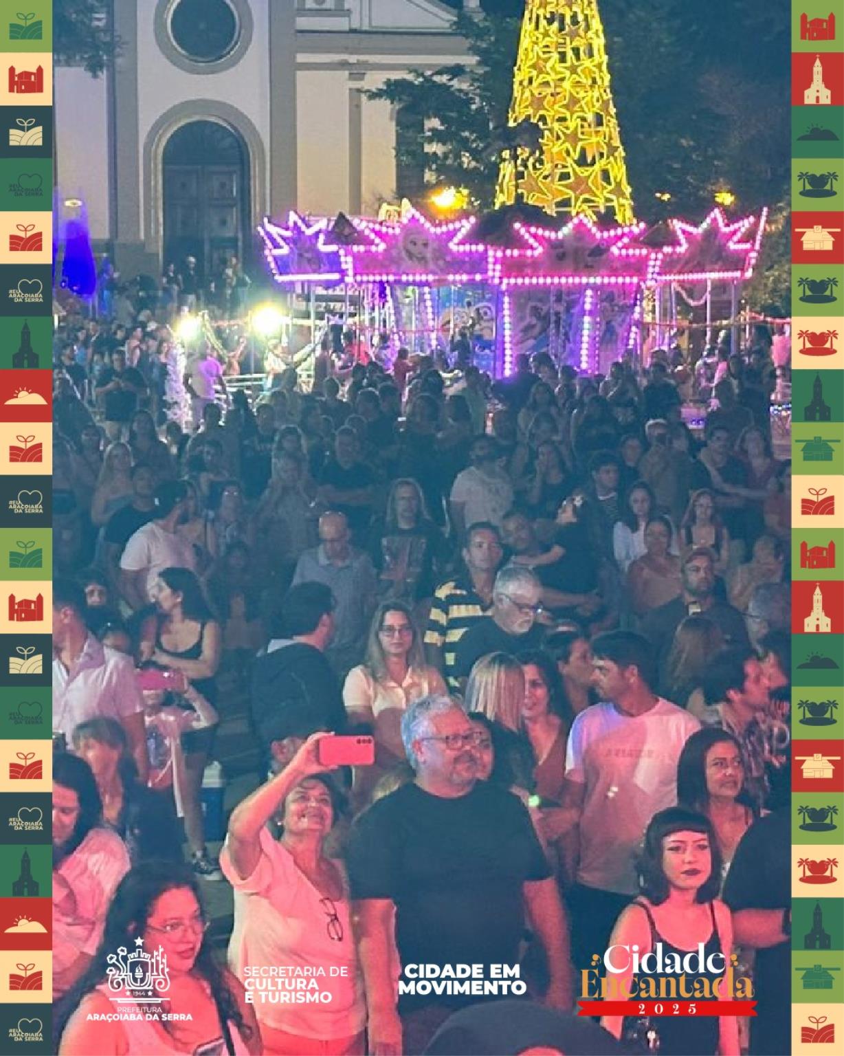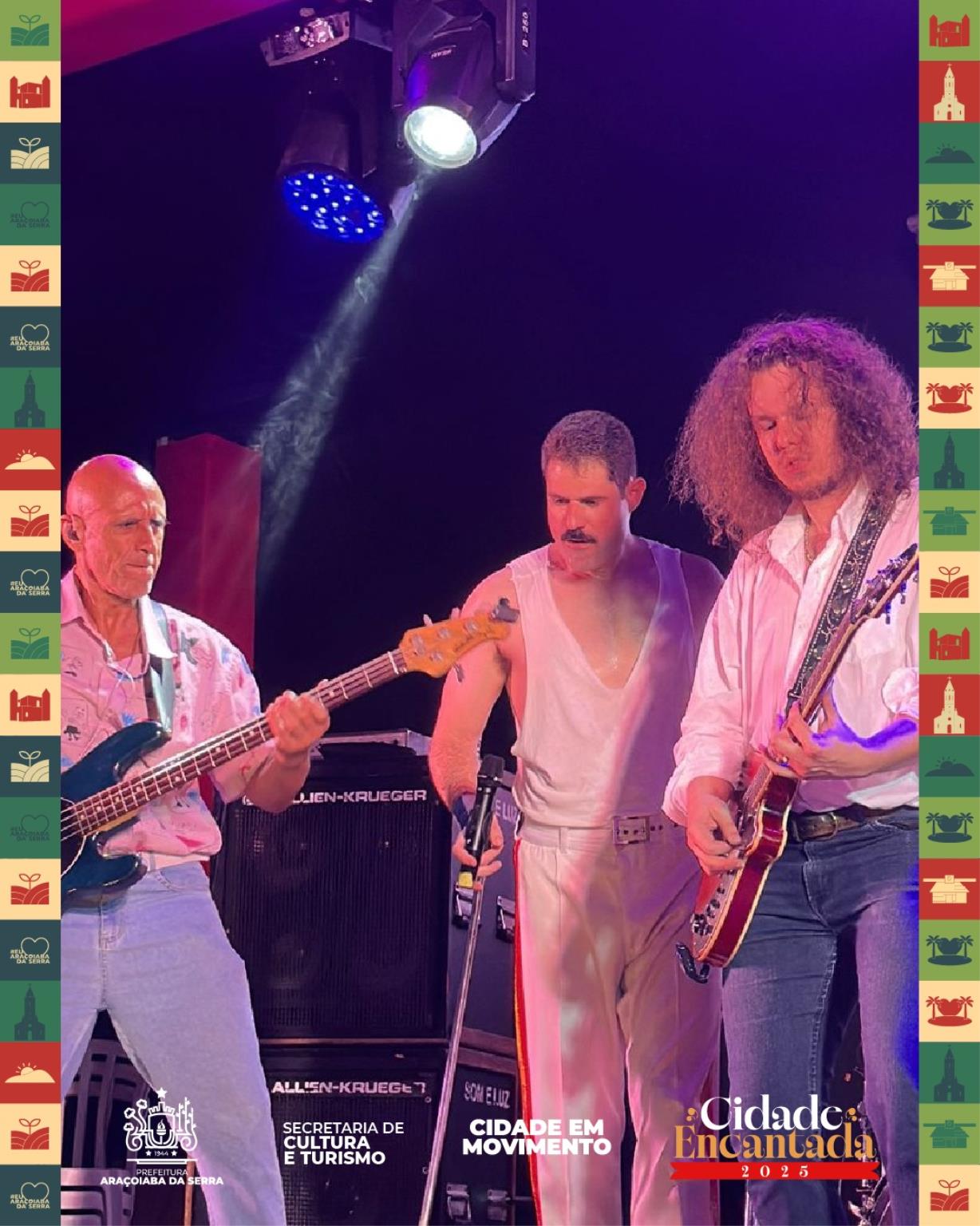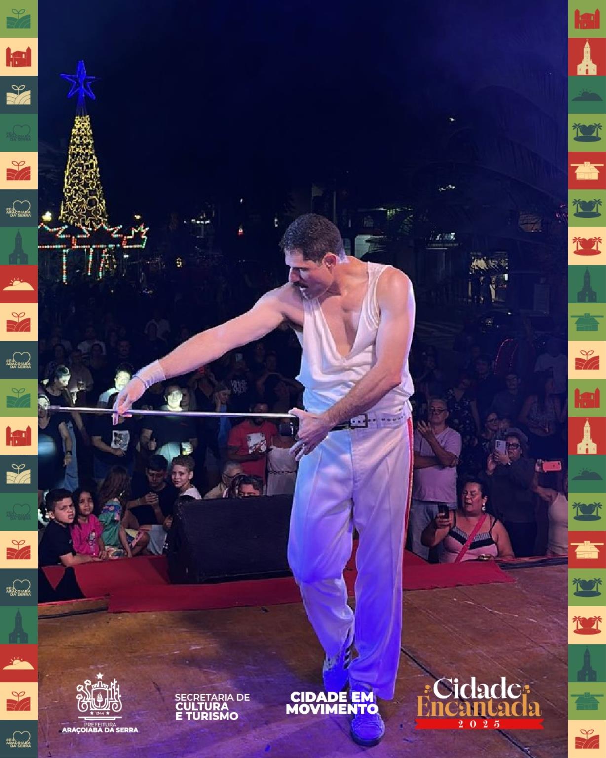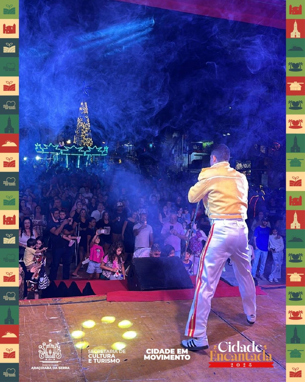 A noite do último sábado (20) foi inesquecível no Natal Cidade Encantada. A Orquestra Filarmônica Jovem de Sorocaba emocionou o público com uma apresentação cheia de sensibilidade, enquanto o show Queen Cover trouxe energia, nostalgia e clássicos que transformaram a praça em um verdadeiro espetáculo ao ar livre. Mais uma noite de luz, música e muita vibração positiva na Praça Coronel Almeida.