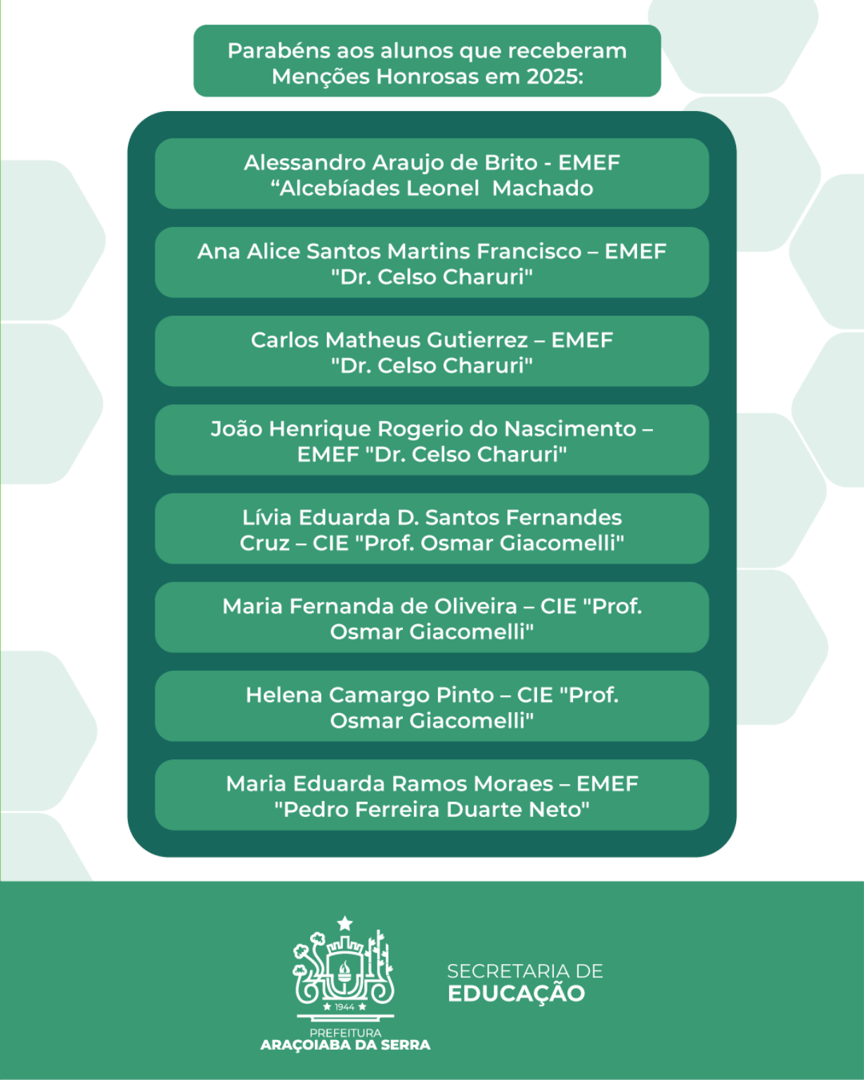 A Prefeitura de Araçoiaba da Serra parabeniza todos os alunos, professores e escolas envolvidas por esse resultado que enche de orgulho toda a comunidade escolar.