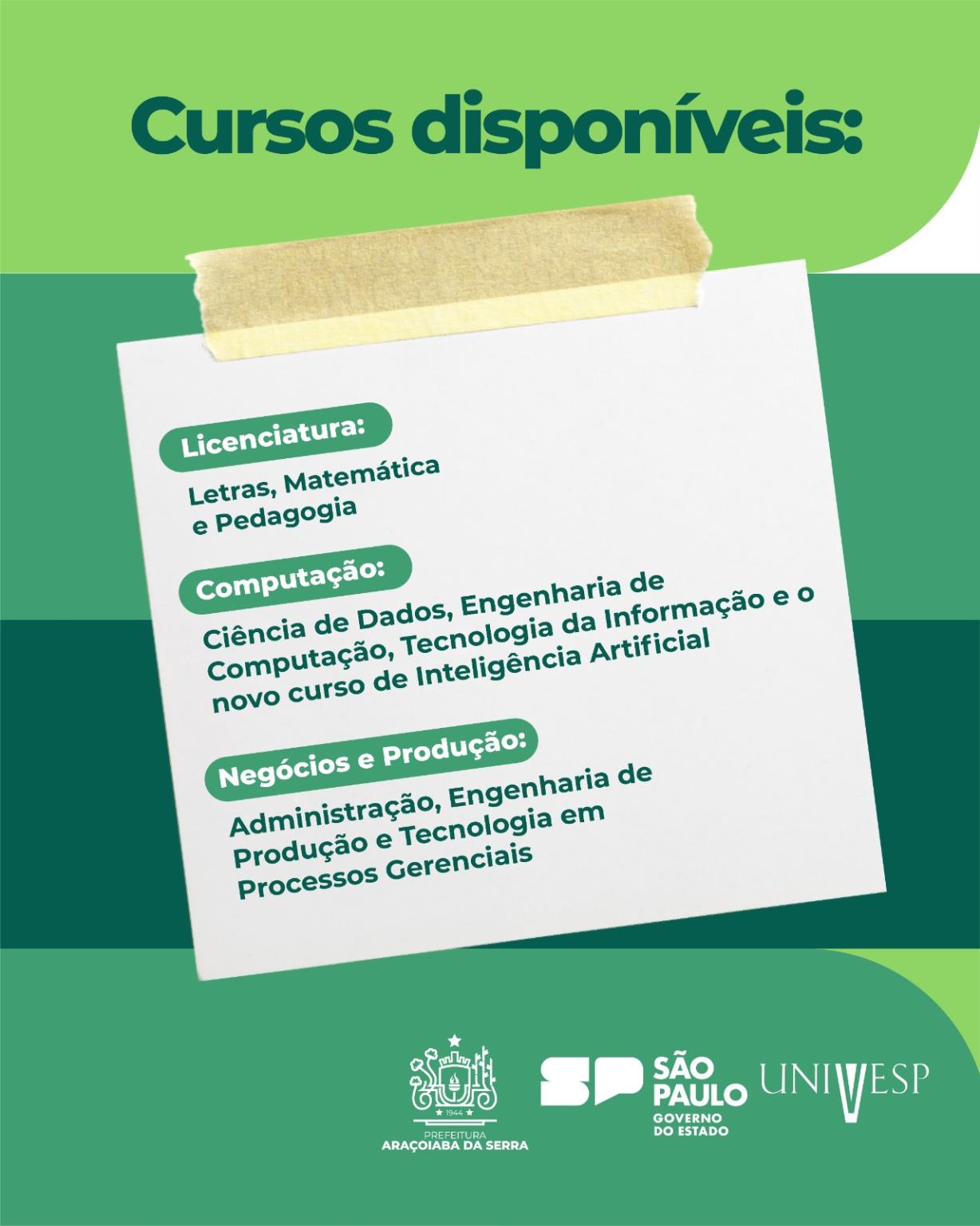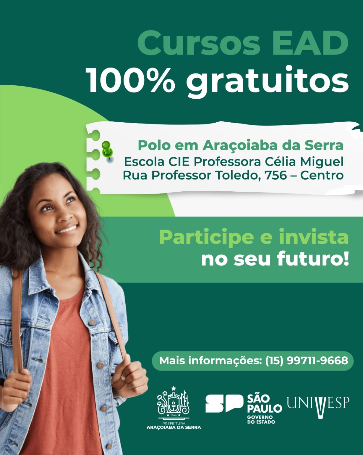Os cursos são oferecidos na modalidade Ensino a Distância (EaD) e estão organizados em três eixos: