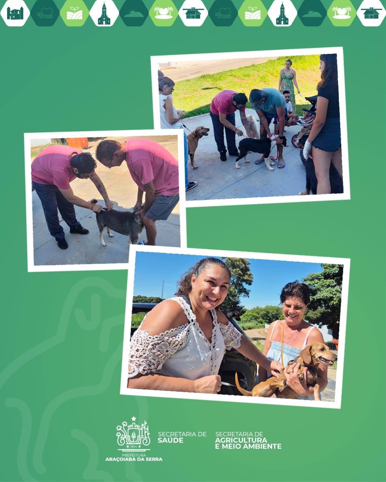 Neste domingo, 29 de março, a Prefeitura de Araçoiaba da Serra, por meio das Secretarias de Saúde, Agricultura e Meio Ambiente, realizou a vacinação antirrábica de cães e gatos na C.E.I. Profª Creusa Maria Cardoso Roldan. Ao todo, foram aplicadas 60 doses, contribuindo para a proteção dos animais e de toda a população. A vacinação é essencial no combate à raiva, uma zoonose grave, e reforça a importância do cuidado responsável com os pets. A Prefeitura agradece a todos que participaram e levaram seus animais para vacinar, fortalecendo essa ação de cuidado com a saúde pública e o bem-estar animal.